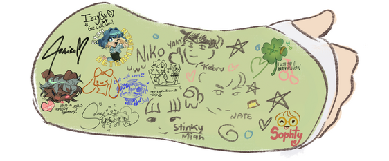 The cast you see now is a digitalized version of how my cast looked! Having signs of my moots and friends that helped me along the way